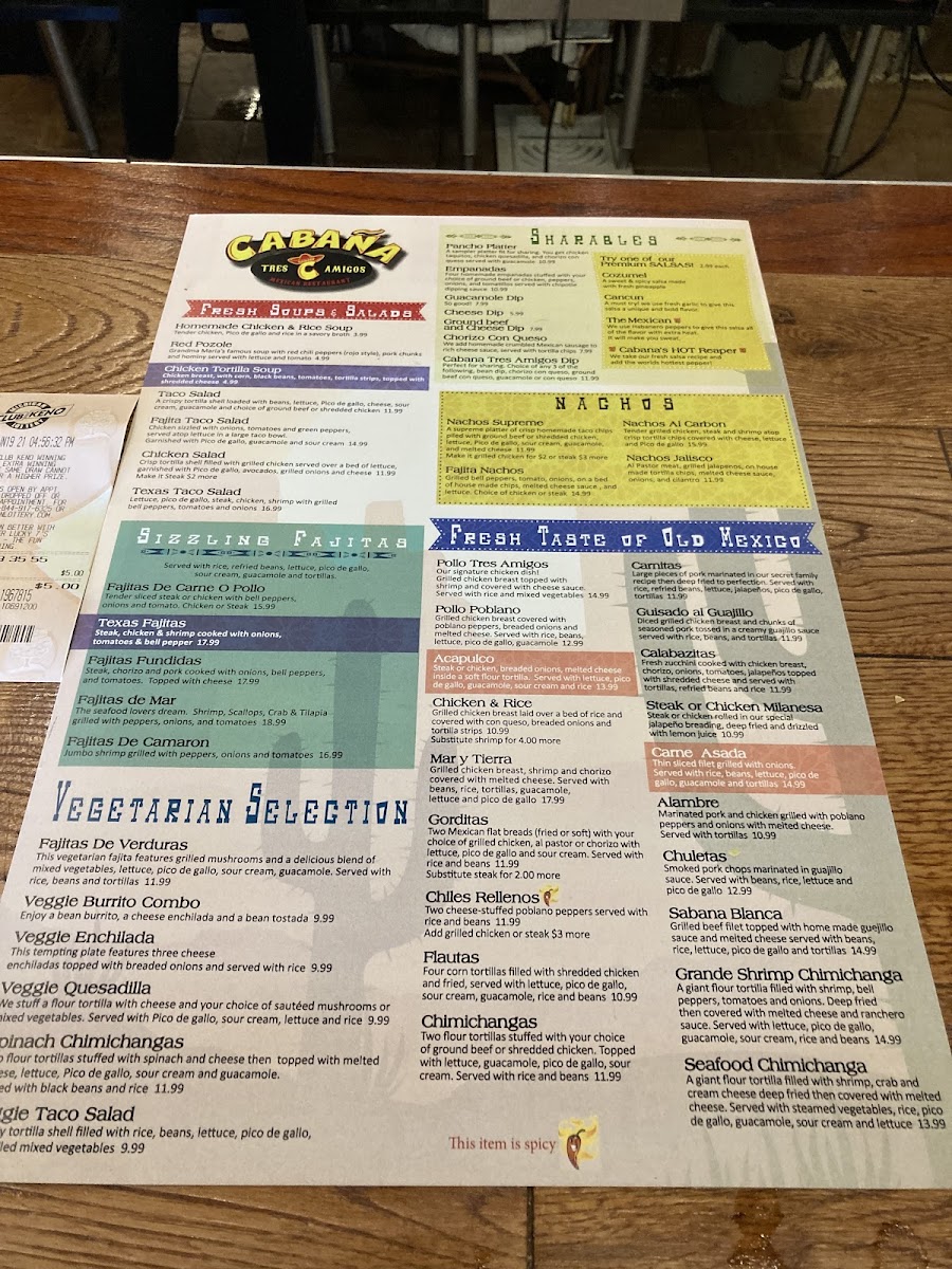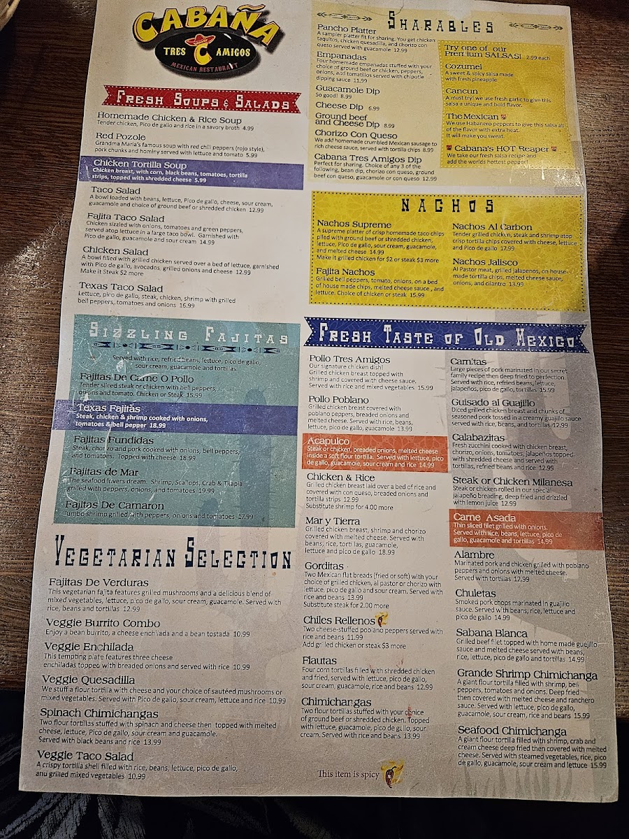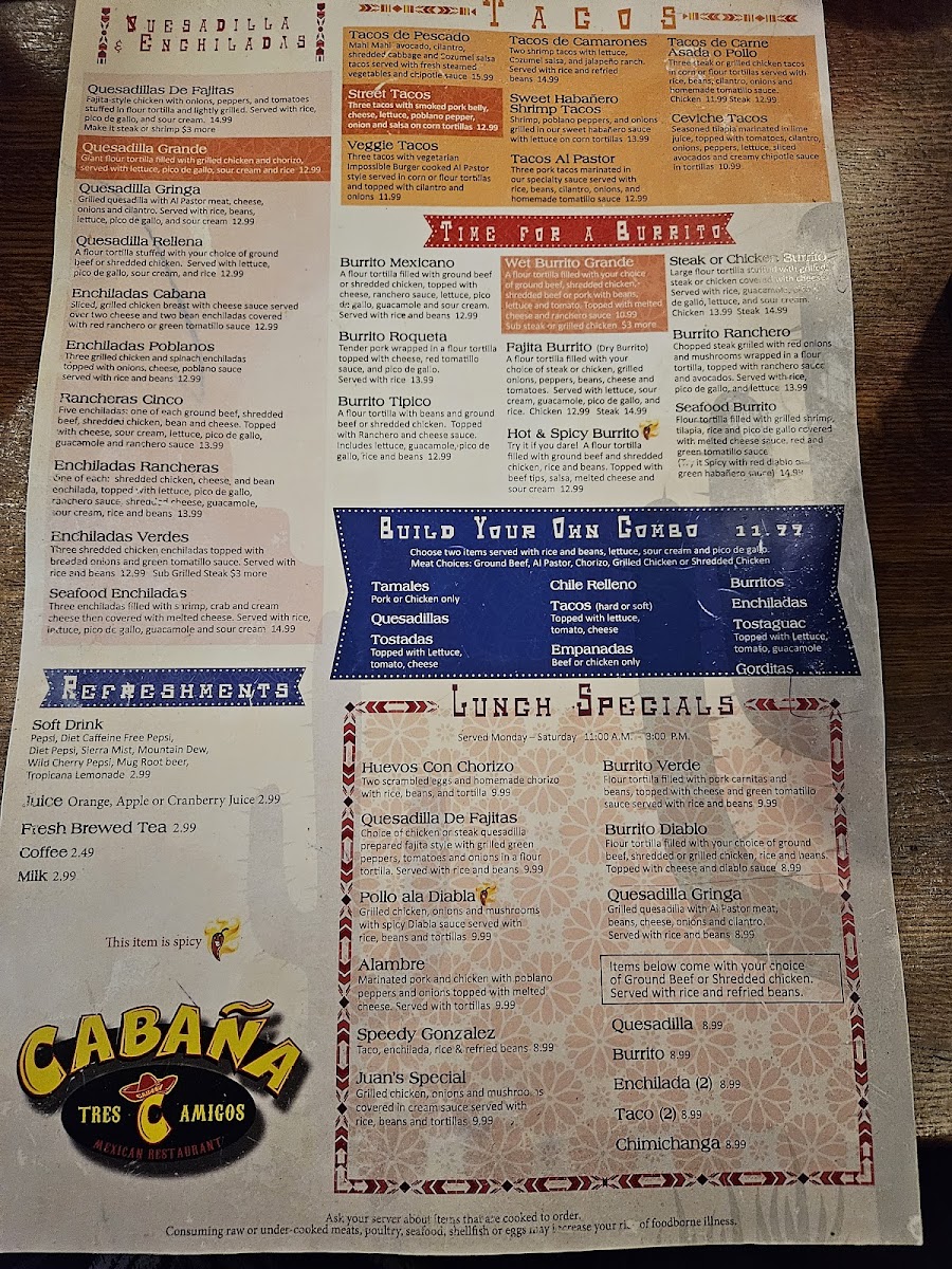 With friendly service and a spacious dining area, Cabana Tres Amigos promises both culinary delight and a fantastic dining experience.